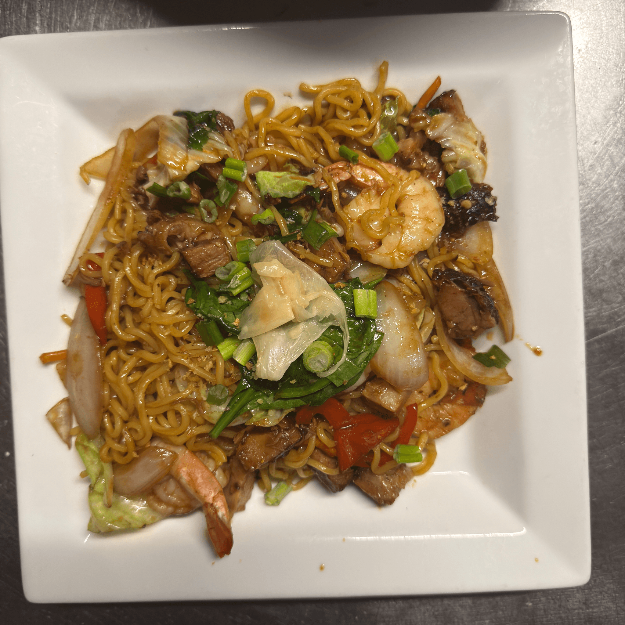 Stir Fried Soba Noodles, Shrimp And Chashu Pork